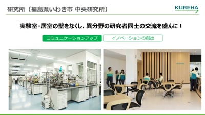 約40分の会社説明動画を7つのチャプターで紹介。そのほか、研究所動画、いわき事業所・社員寮紹介動画も掲載していますので、あわせてご覧ください。